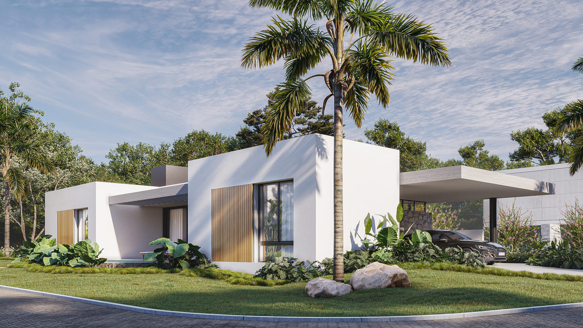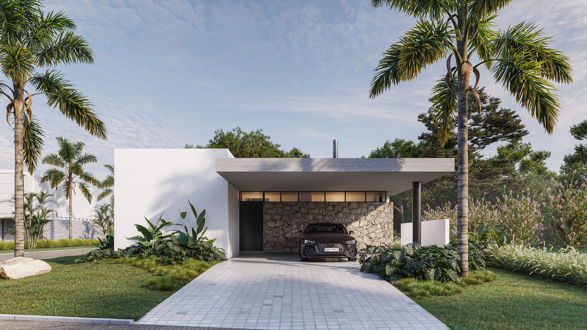 Residência térrea contemporânea com pé-direito elevado e volumes marcantes em concreto aparente. O projeto valoriza a horizontalidade, a integração com a natureza e o uso de materiais naturais como madeira, pedra e vegetação vertical. A arquitetura combina leveza e imponência, com grandes esquadrias, iluminação cênica e ambientes amplos e arejados. A Casa Horizonte traduz sofisticação, funcionalidade e conexão com o entorno em uma proposta atemporal e acolhedora.